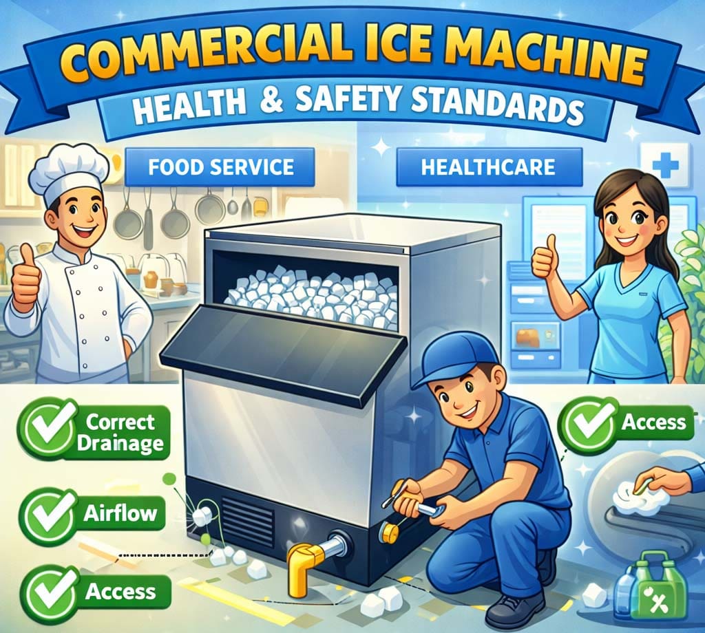 Ice machines must meet health and safety standards, especially in food service and healthcare environments. Proper installation supports sanitation by ensuring correct drainage, airflow, and access for cleaning and maintenance.