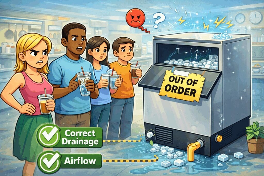 Water quality, ambient temperatures, and airflow conditions all affect ice machine performance. Northern Nevada’s climate and water characteristics require thoughtful installation practices to ensure consistent ice production.